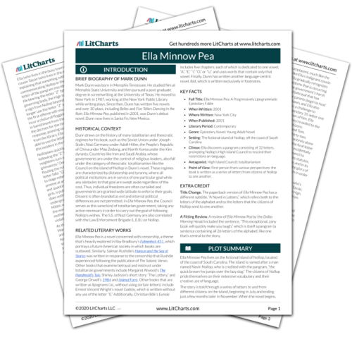 - Dunn, M., 2001. Ella Minnow Pea: A Novel in Letters. San Francisco: MacAdam/Cage.